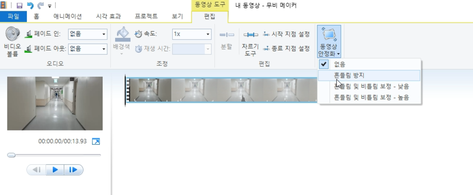 - 편집 탭에 동영상 안정화를 클릭