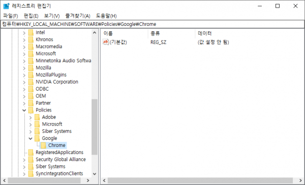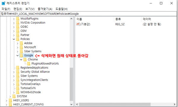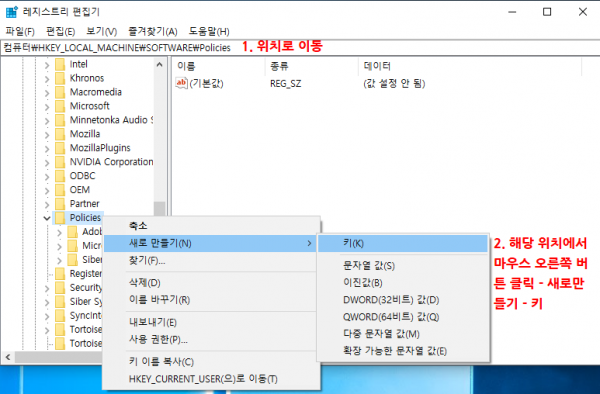 - 컴퓨터\HKEY_LOCAL_MACHINE\SOFTWARE\Policies 해당 위치로 이동