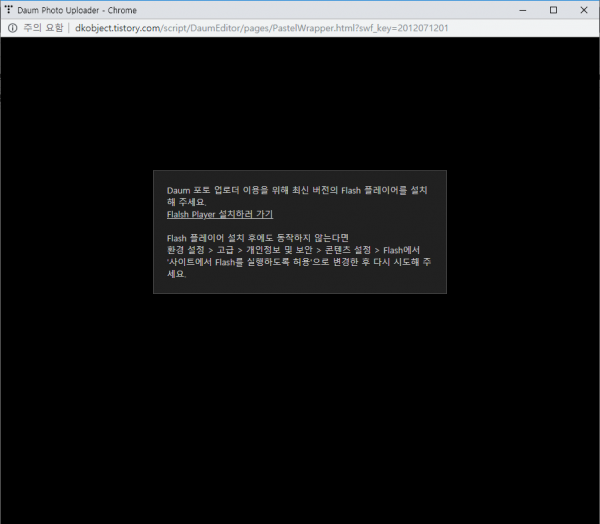 티스토리 작성할 때나 플래시가 동작하는 사이트에 접속시에 매번 이런 메세지가 나옵니다.