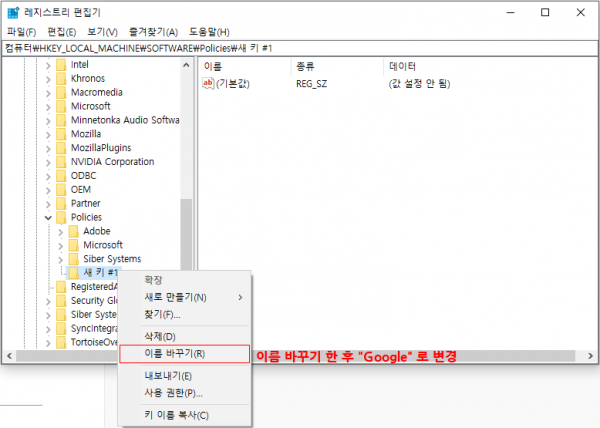 - "새 키 #1" -> "Google" 로 이름바꾸기 합니다.