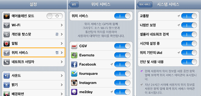 GPS, 블루투스, 애플리케이션은 스마트폰 배터리 게이지를 줄이는 주범입니다. 필요할 경우에만 ON 시켜서 사용하면 배터리를 더욱 효율적으로 사용할 수 있습니다.