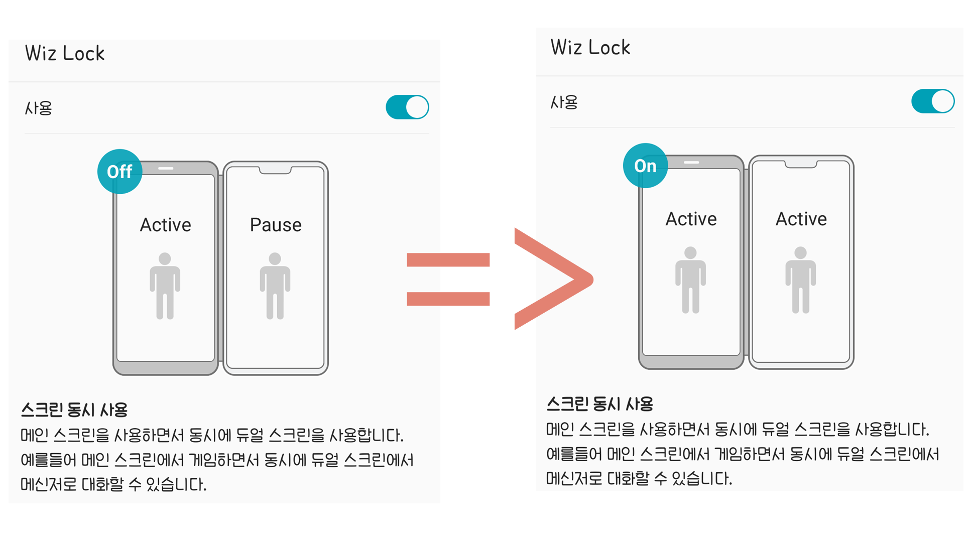 듀얼스크린 설정을 할 수 있는 Wiz Lock 앱을 실행을 합니다.