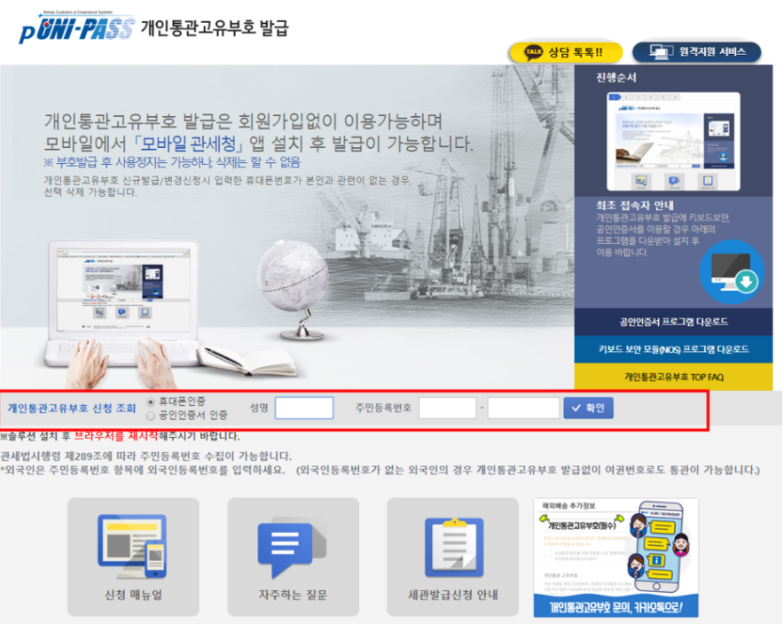 9. 개인 통관 번호 확인