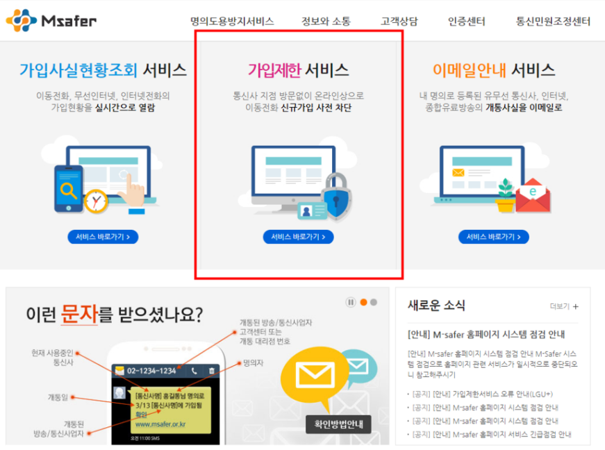 m-safer에서 확인과 신규 서비스 가입제한을 모든 일이 정리될 때까지 설정 해 둡니다.