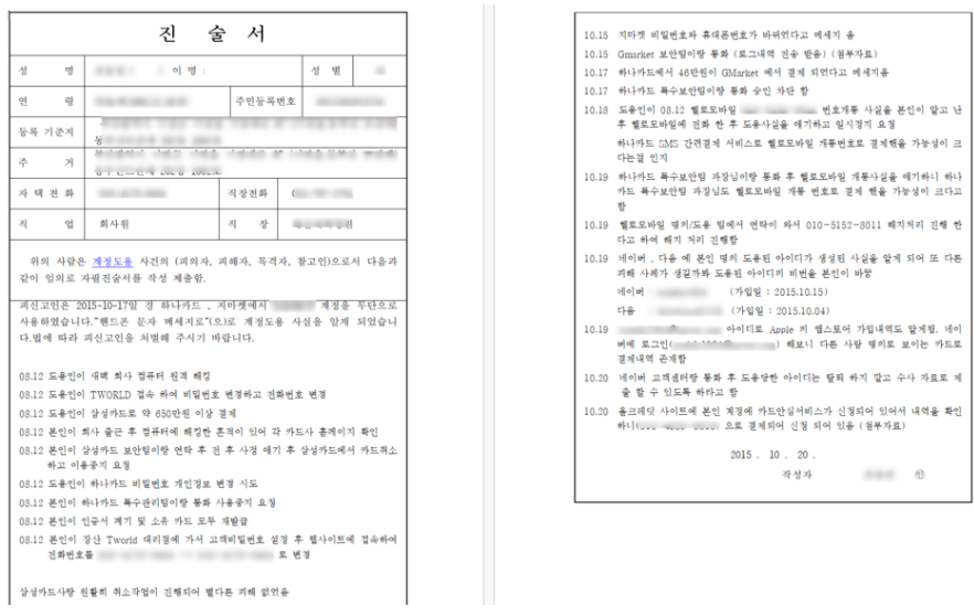 당시 저도 모르는 신용카드의 결제 내역이 존재했습니다.