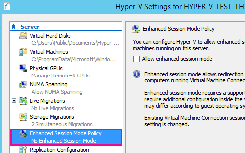 Hyper-V 호스트에서 Windows 10 또는 Windows 8.1을 실행하는 경우 고급 세션 모드가 기본적으로 켜져 있으므로 이를 건너뛰고 다음 섹션으로 이동할 수 있습니다. 그러나 호스트에서 Windows Server 2016 또는 Windows Server 2012 R2를 실행하는 경우 먼저 이 작업을 수행합니다.