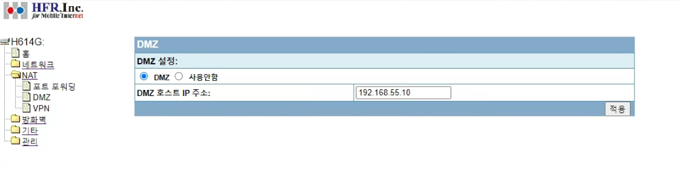 DMZ ( Demilitarized Zone ) 를 나스(NAS) 내부아이피로 설정